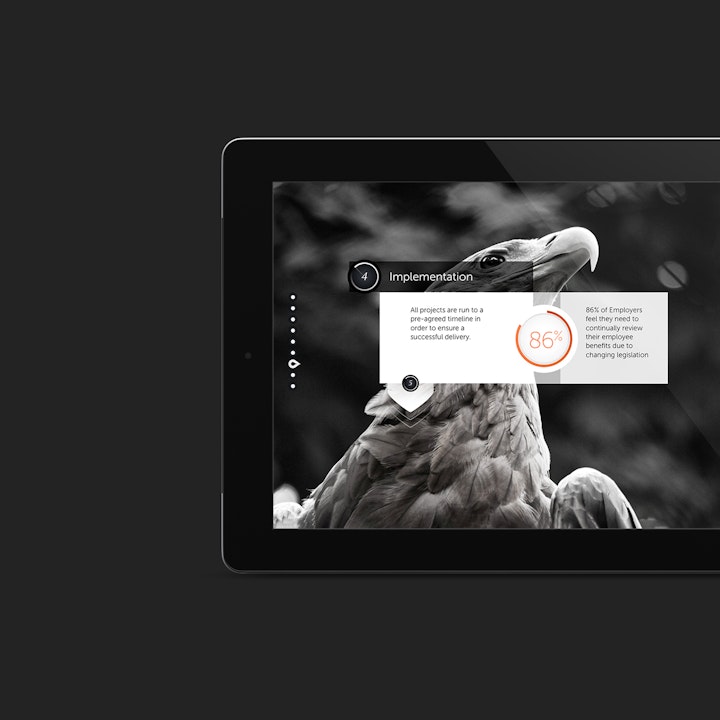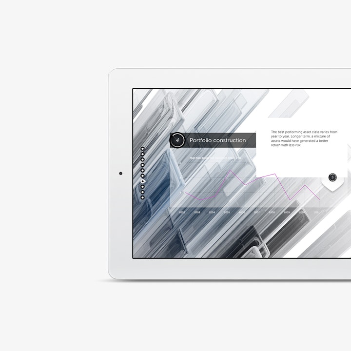 The company specialise in investment planning and protection for both private and corporate clients and wanted to produce a more tangible method of explaining their process and methodology to prospective clients. This task traditionally happens with a face-to-face chat, a little pointing to pieces of paper and frantic sketching. Using the iPad in introducer meetings as a simple tool to explain the company and illustrate the investment process then seems like the perfect solution.